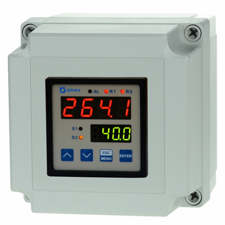 Miernik procesowy SRP-77 do zabudowy tablicowej z dwoma wyświetlaczami wyposażony w wejście prądowo-napięciowe 0/4-20mA, 0/1-5V, 0/2-10V; Pierwszy wyświetlacz przedstawia wartość mierzoną, drugi zaprogramowane wartości progów zadziałania przekaźników, których może być odpowiednio 0/1/2. Urządzenie dedykowane do aplikacji, gdzie istnieje konieczność ciągłej kontroli nastawionych wartości progowych.
